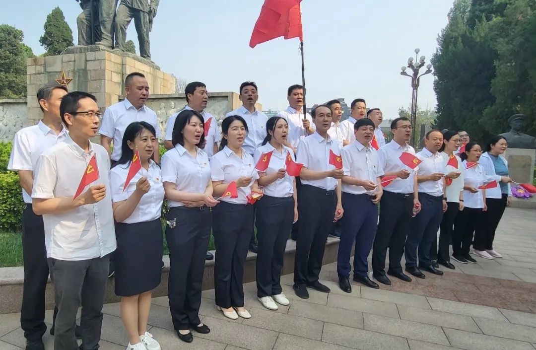 最后,大家來到烈士紀念館廣場上,排列整齊的隊伍,揮動黨旗,昂首挺胸,高唱“沒有共產黨就沒有新中國”,在黨的生日到來之際,抒發對黨熱愛之情,嘹亮的歌聲在廣場上空回蕩。