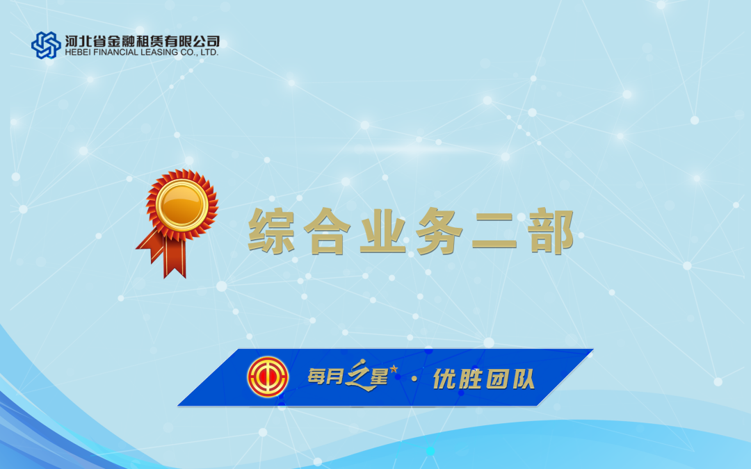 6月份,河北金租全員朝著半年經(jīng)營目標(biāo)努力奮進(jìn),掀起實(shí)干苦干、抓細(xì)抓實(shí)的熱潮。工會(huì)委員會(huì)評(píng)選出本月“每月之星”,請(qǐng)優(yōu)勝團(tuán)隊(duì)和優(yōu)秀員工珍惜榮譽(yù),再立新功,請(qǐng)全體干部員工以先進(jìn)為榜樣,再接再厲,再創(chuàng)佳績(jī)。